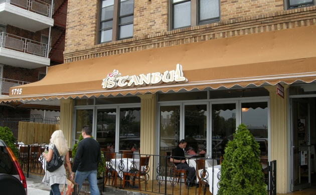 Bright and stylish awnings catch the eye of passersby and make the restaurant stand out. This attractive addition draws in more customers and creates a welcoming atmosphere for diners.